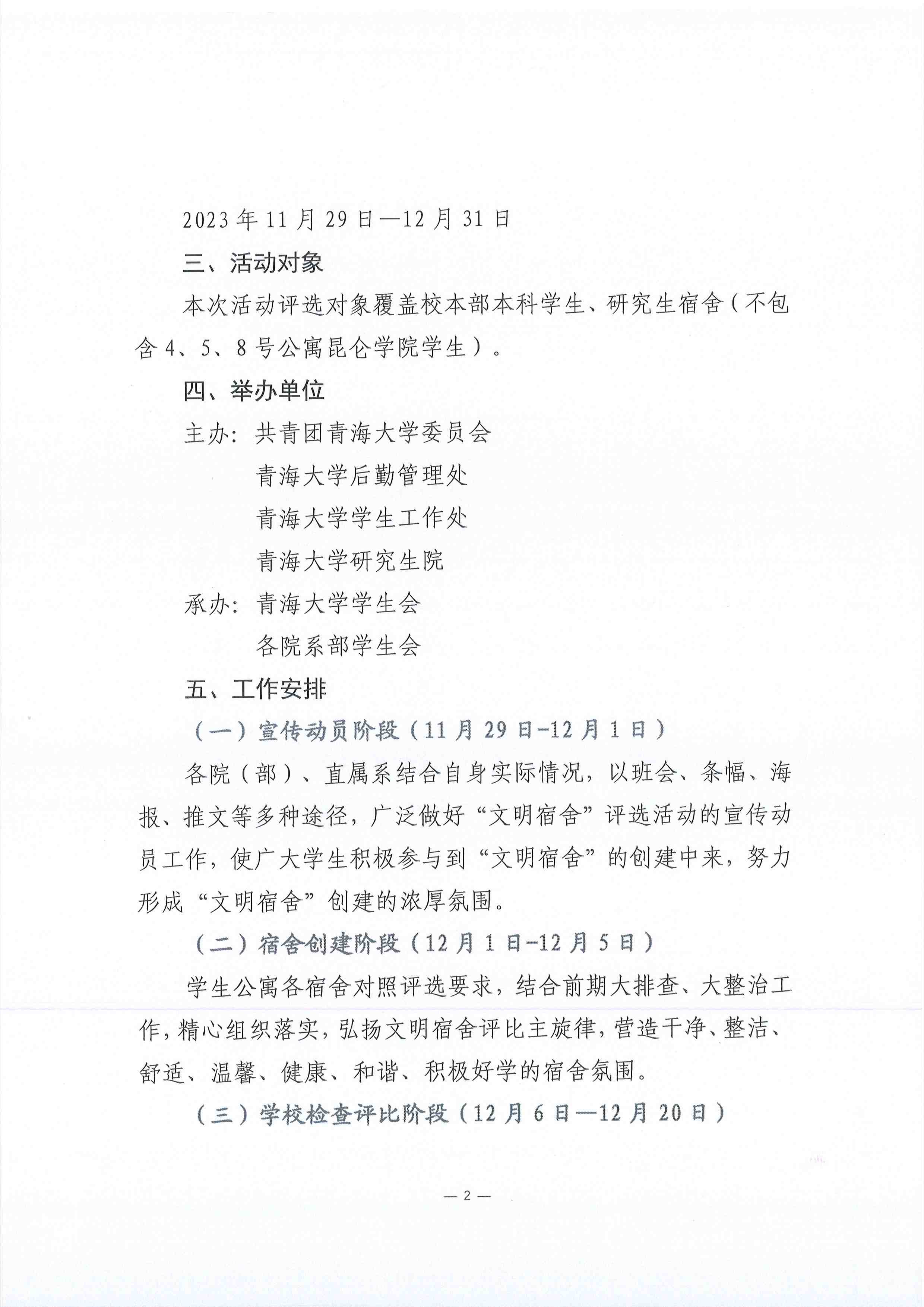 关于开展2023年度下半年“一见‘寝’心,随‘寓“而安”精神文明宿舍评选活动的通知