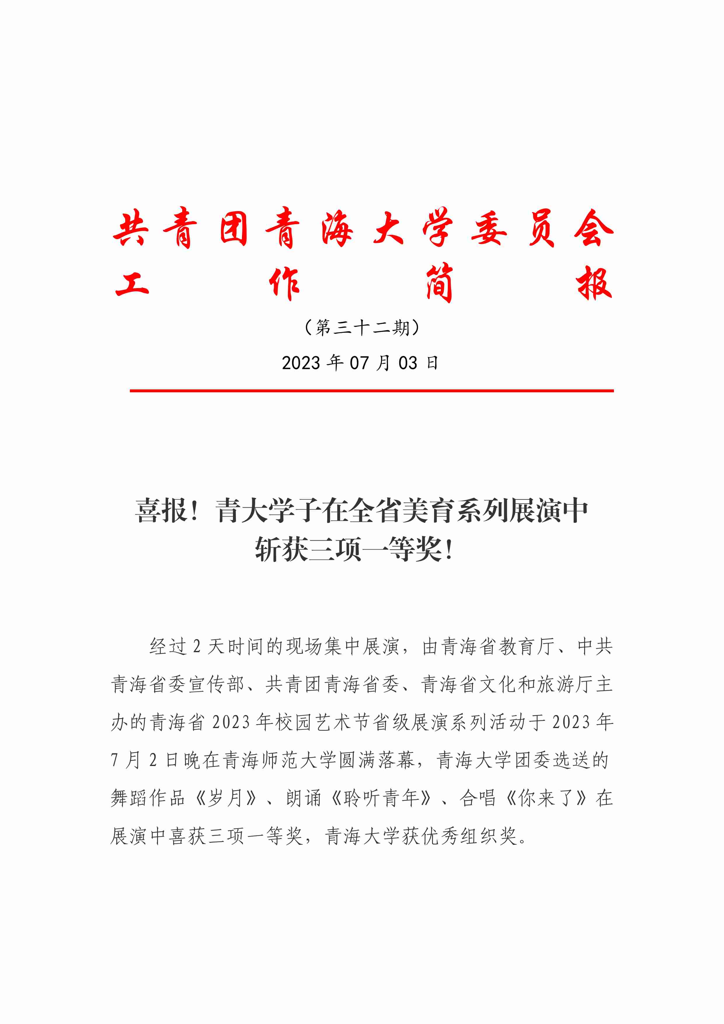 喜报!青大学子在全省美育系列展演中斩获三项一等奖!